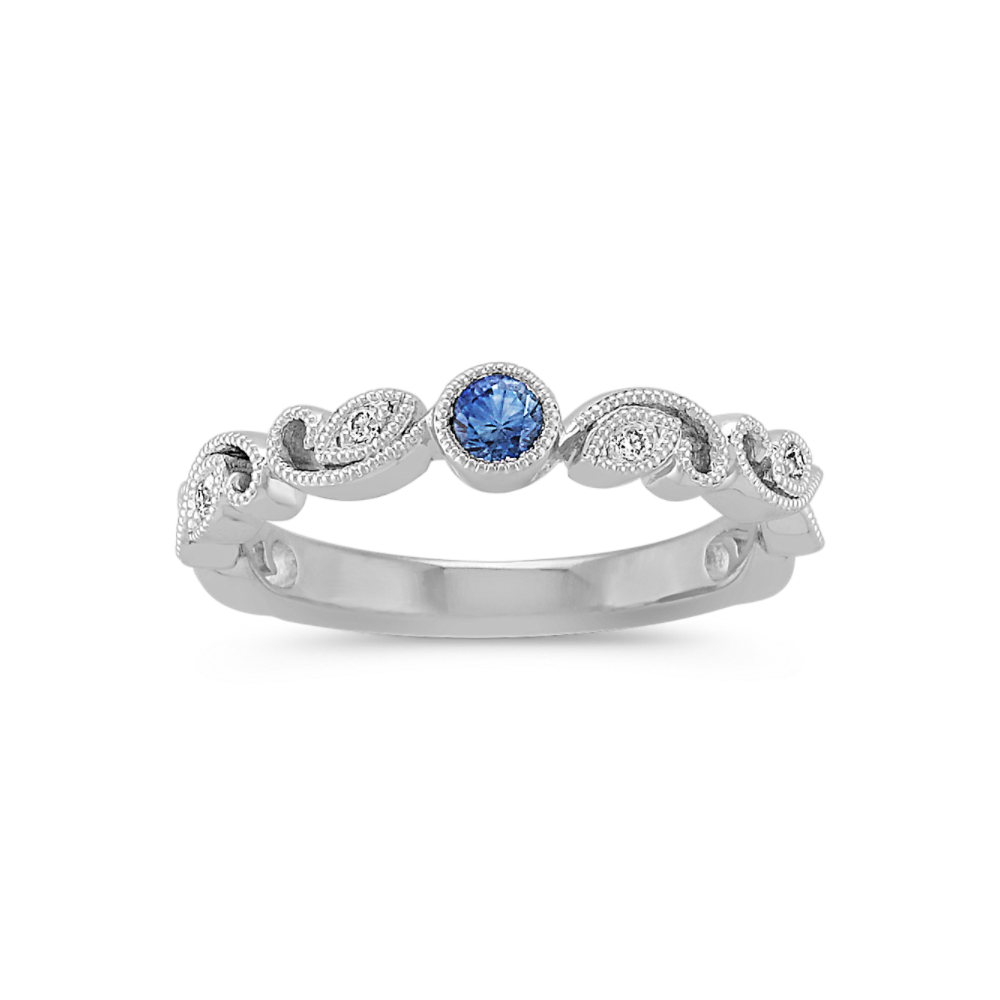 Round Kentucky Blue Sapphire and Round Diamond Stackable Ring Shane Co.